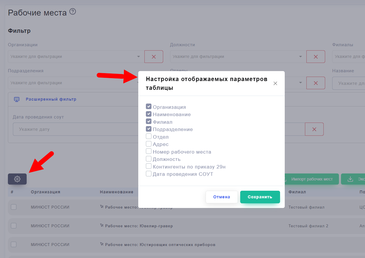 8. Импортировать список рабочих мест нажав на кнопку "Импорт рабочих мест"