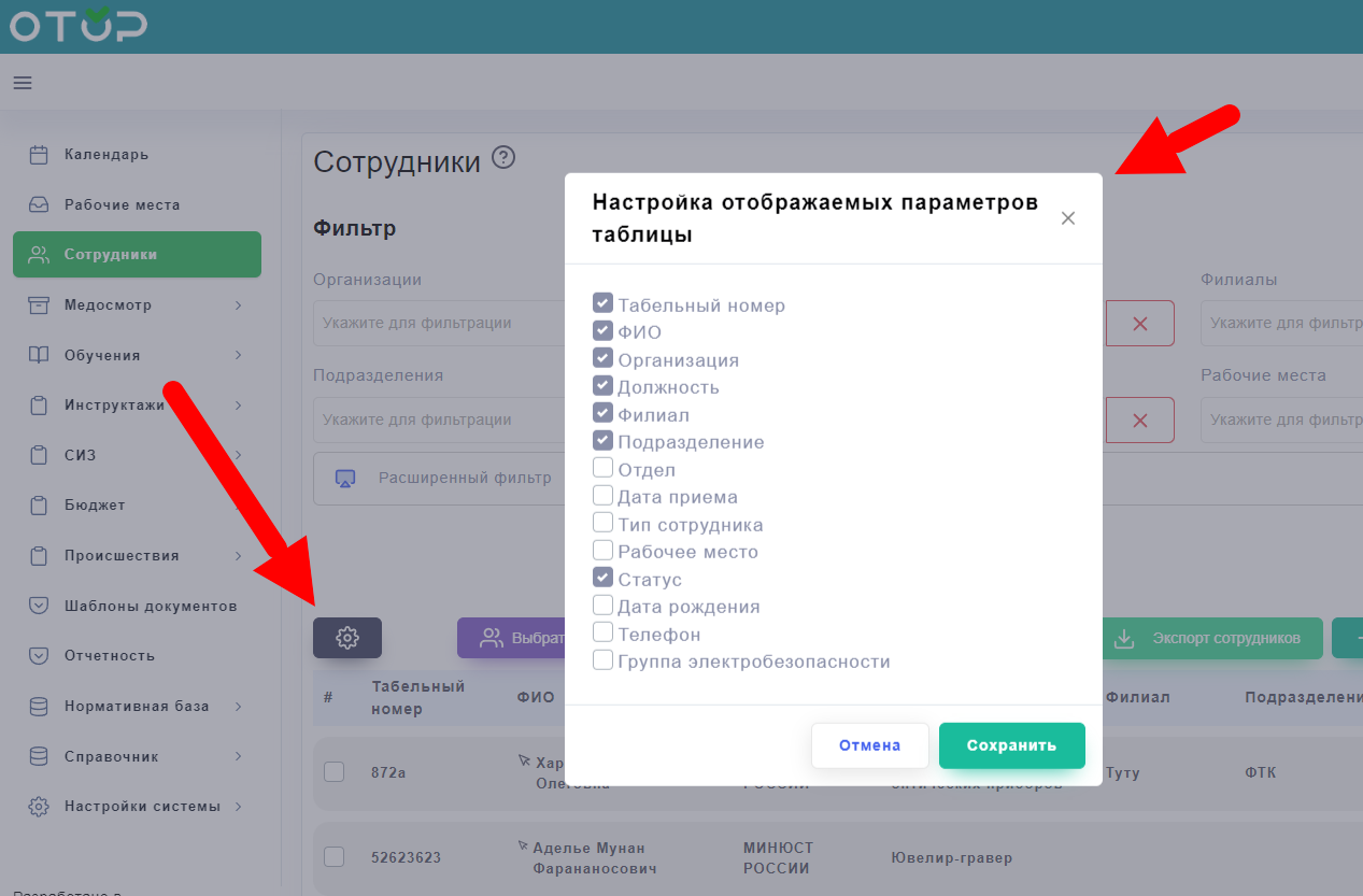 Сам же список сотрудников представляет из себя таблицу, с минимальным количеством данных для опознавания сотрудника в списке.