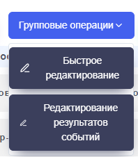 Для того, чтобы воспользоваться "Редактированием результатов событий" необходимо нажать на кнопку "Групповые операции" в основном меню страницы