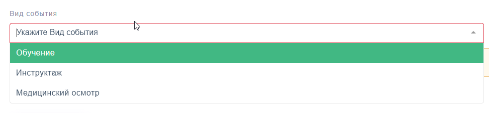 Для это необходимо указать вид события, которое Вы хотите отредактировать в поле "Вид события"
