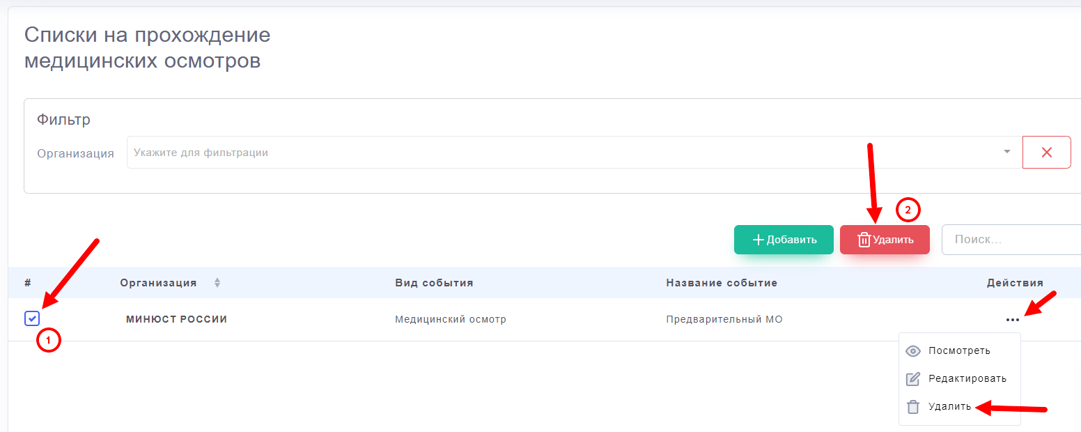 5. Удалить поименный список, отметив необходимый список "галочкой", либо, нажав на знак "троеточие" напротив нужного списка, и, во всплывающем меню, нажать "Удалить".